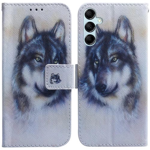 Funda de Cuero Samsung Galaxy A15 con Tapa y Dibujo Coloreado (Lobo Blanco)