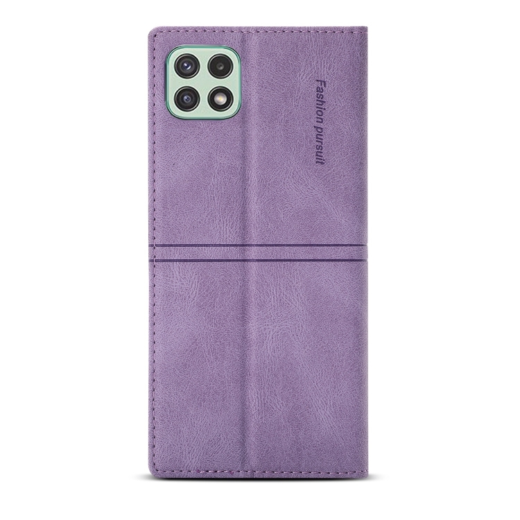Funda para Samsung Galaxy A22 5G Cuero PU Horizontal Flip con Soporte y Ranura para Tarjeta y Billetera (Púrpura)