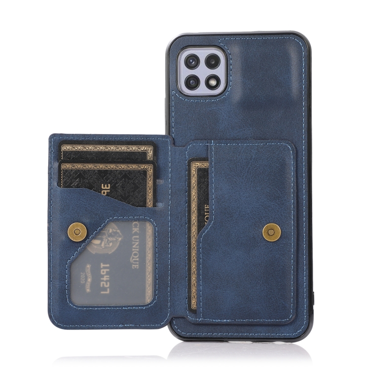 Funda para Samsung Galaxy A22 5G Textura de Tarjeta Magnética PU (Azul)