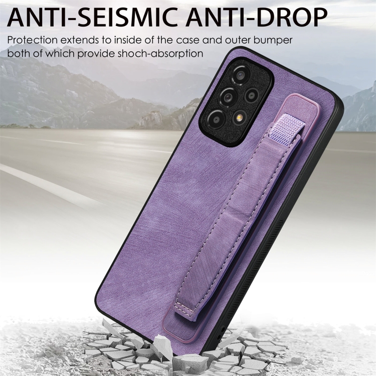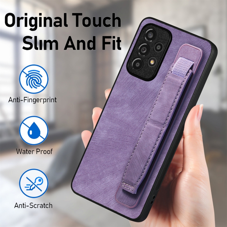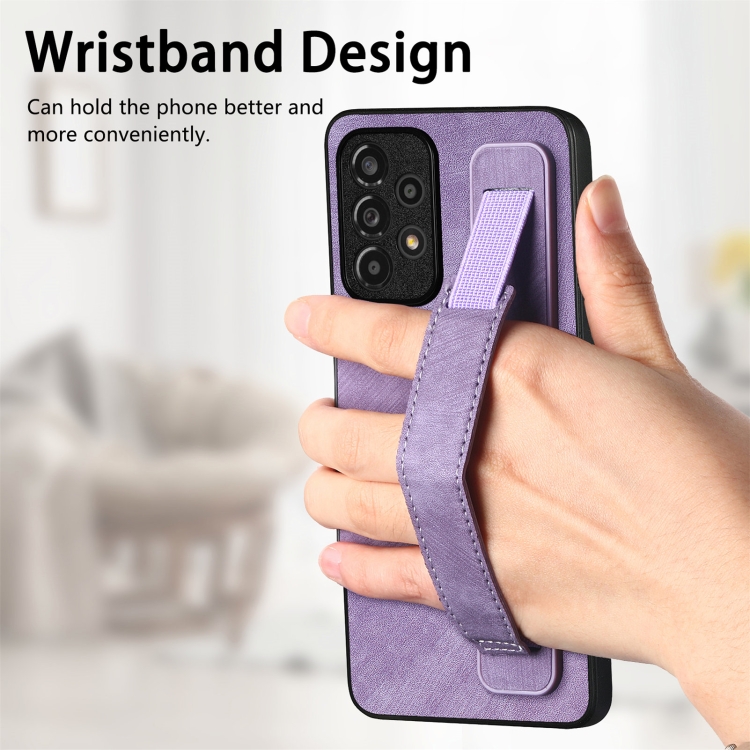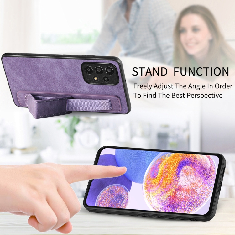 Funda Trasera de Cuero para Samsung Galaxy A23 con Soporte para Pulsera Retro (Púrpura)