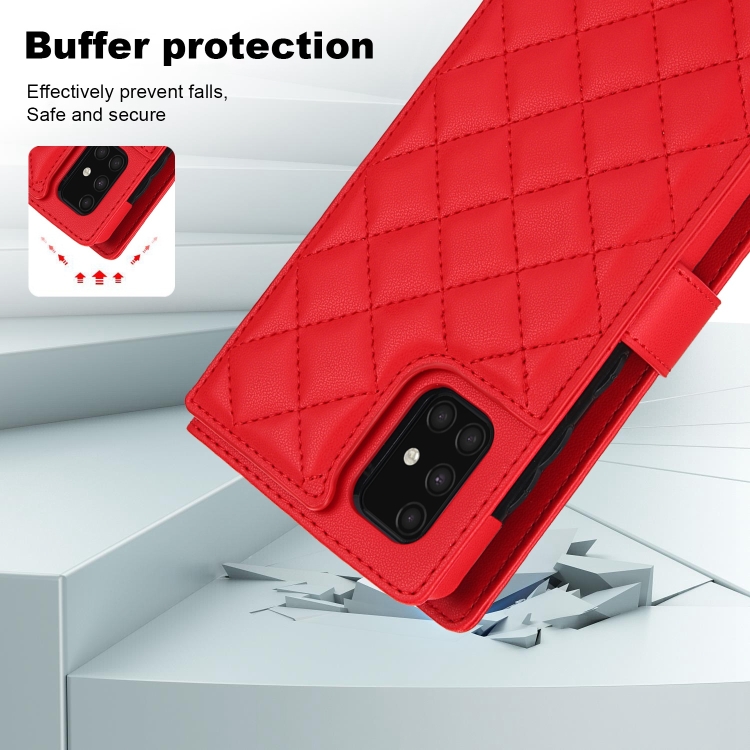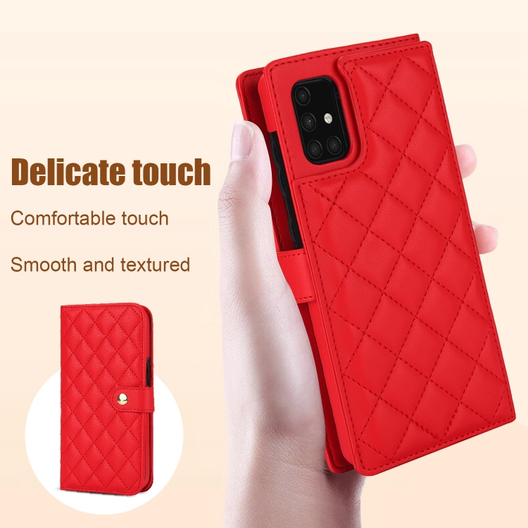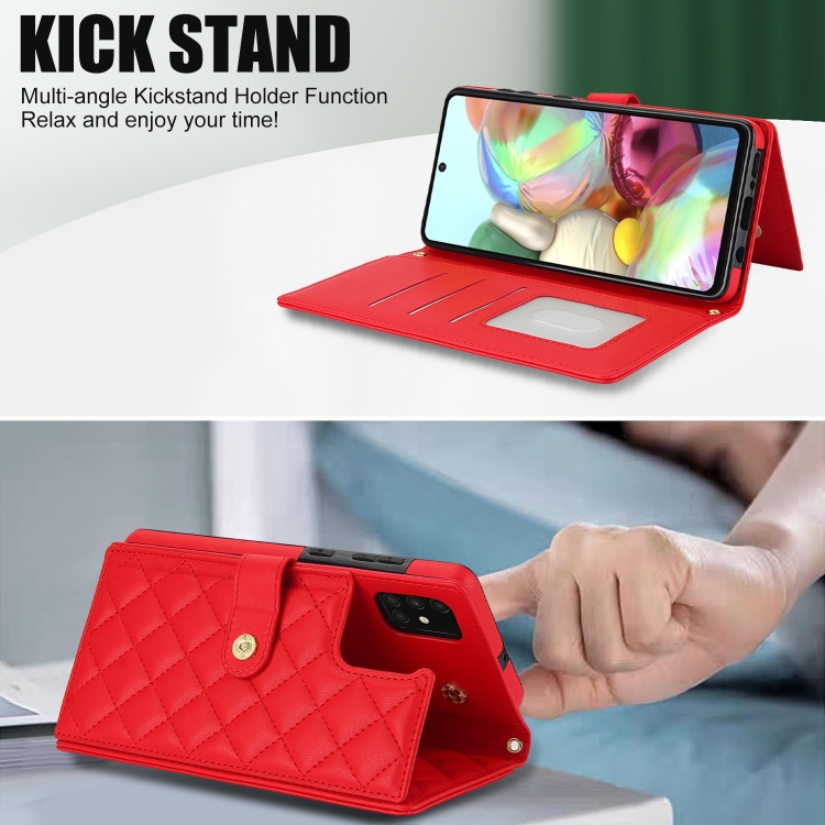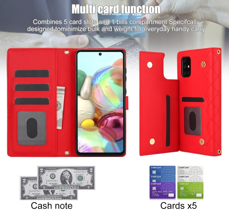 Estuche para Teléfono Samsung Galaxy A51 4G Crossbody de Cuero Rómbico Multifunción (Rojo)