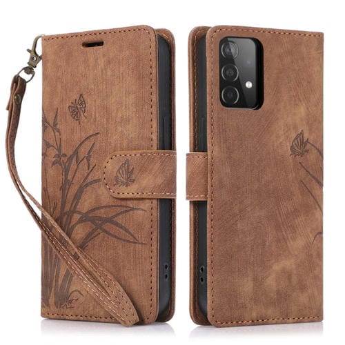 Funda para Samsung Galaxy A52 4G y 5G Cuero Relieve Mariposa Orquídea (Marrón)