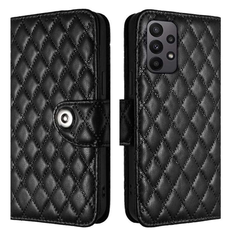 Funda para Samsung Galaxy A53 5G de Cuero con Tapa Textura Rómbica y Cordón (Negro)