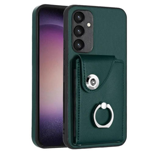 Funda para Teléfono Samsung Galaxy A54 5G de PU con Soporte para Anillo y Bolsa para Tarjeta (Verde)