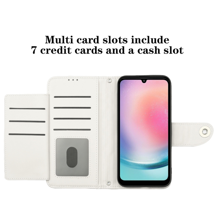 Funda de Cuero para Samsung Galaxy A54 con Tapa Textura Rómbica y Cordón (Blanco)