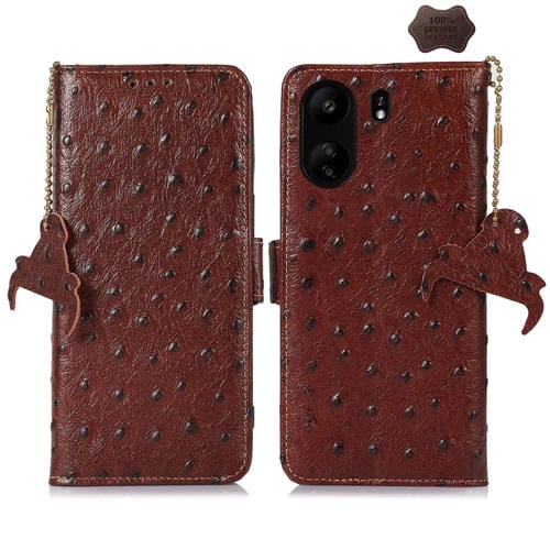Funda para Teléfono Samsung Galaxy A55 5G Cuero Genuino Rfid Patrón Avestruz (Café)