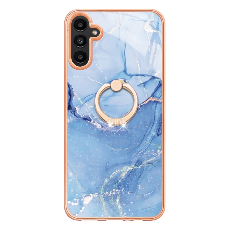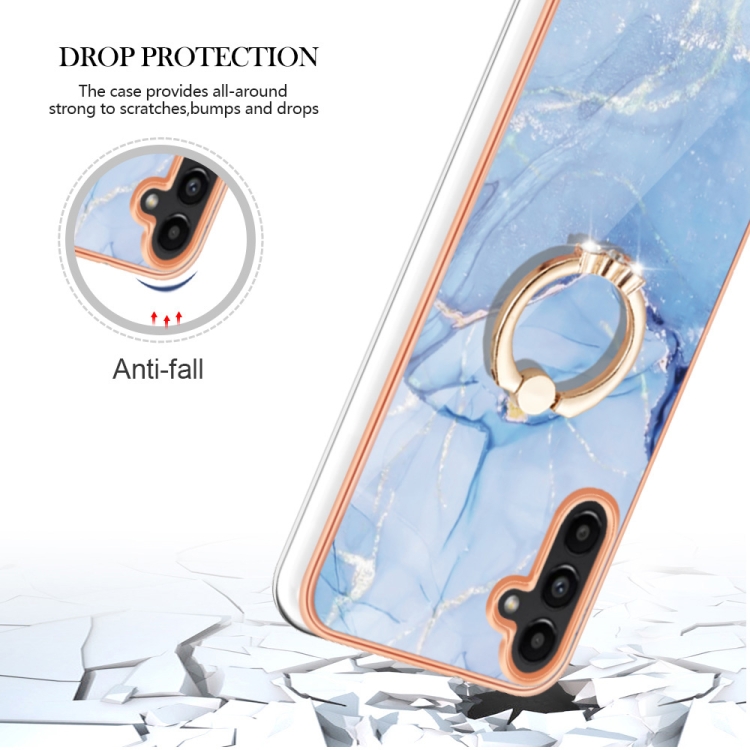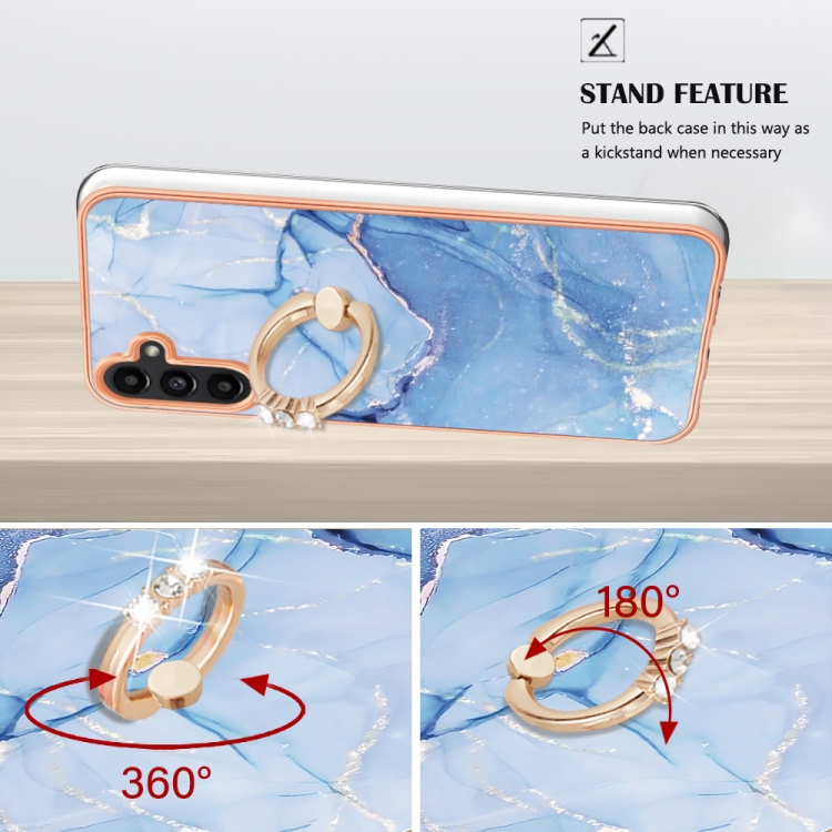 Estuche para Teléfono Samsung Galaxy A55 Imd Doble Cara Mármol Galvanizado con Anillo (Azul)