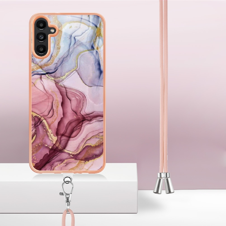 Estuche para Teléfono Samsung Galaxy A55 Imd Doble Cara Mármol Galvanizado con Cordón (Rose Red)