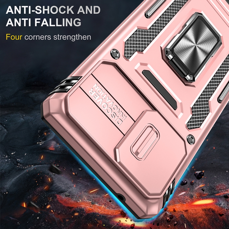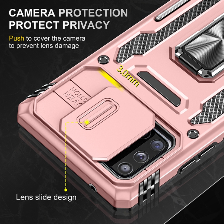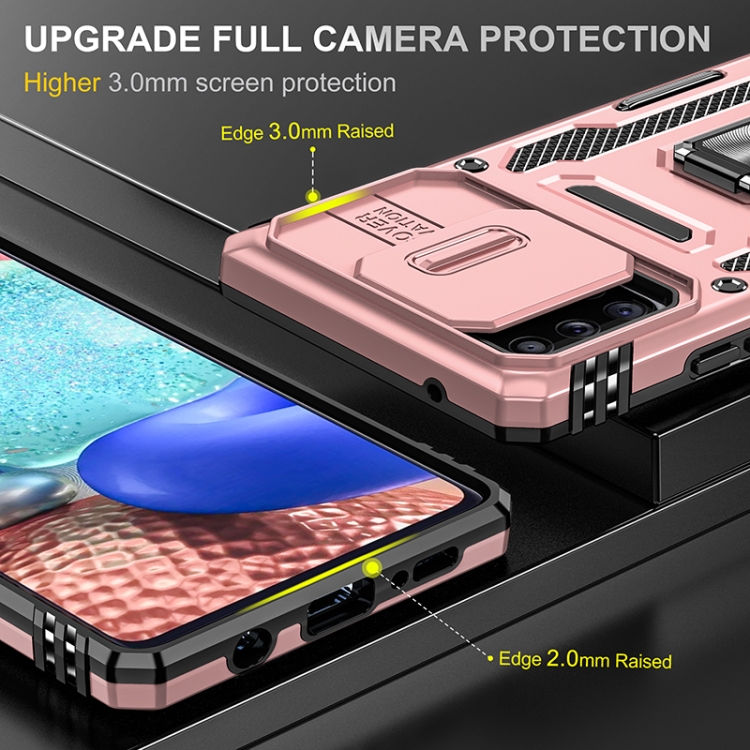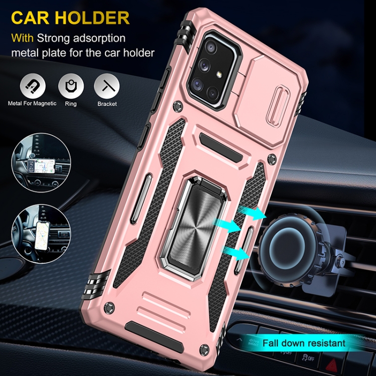 Funda Armor PC + TPU para Samsung Galaxy A71 5G con Protector de Cámara (Oro Rosa)