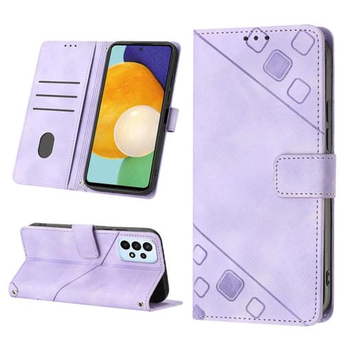 Estuche para Teléfono Samsung Galaxy A72 5G 4G Cuero En Relieve con Tacto de Piel (Púrpura Claro)
