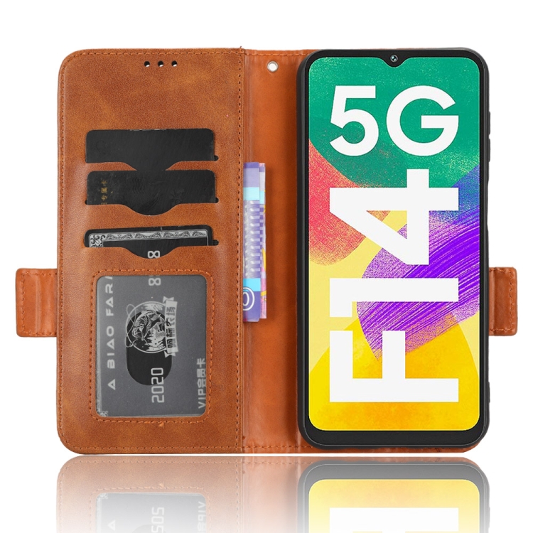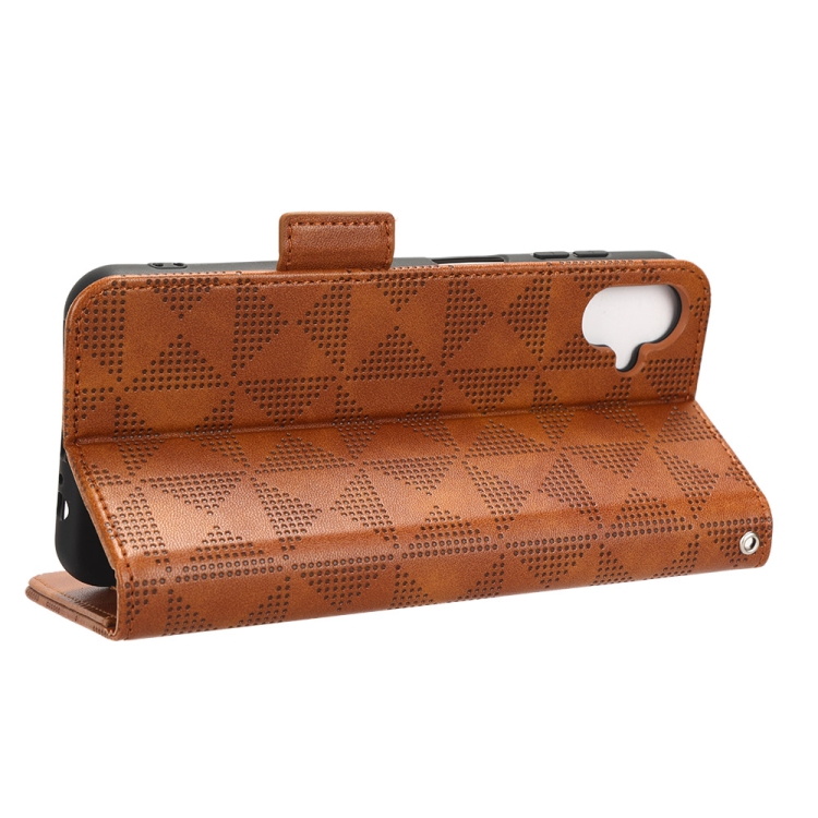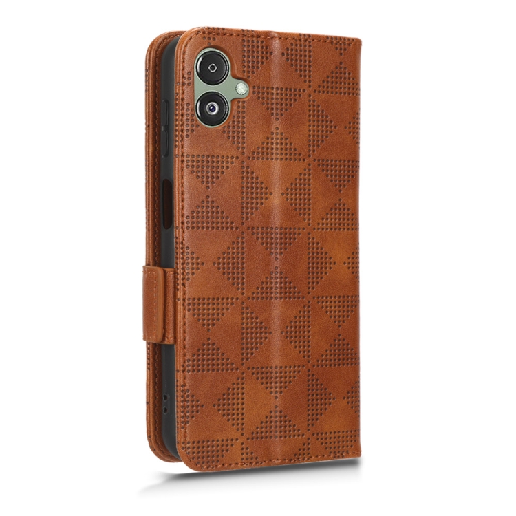 Funda de teléfono Samsung Galaxy F14 Cuero Patrón triángulo simétrico (Marrón)