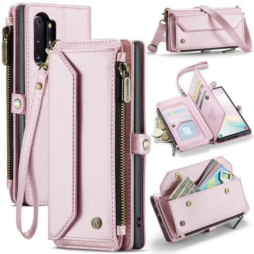 Funda cartera para Samsung Galaxy Note10+ Caseme C36 con ranuras para tarjetas y cremallera Antirrobo Rfid (Rosa)