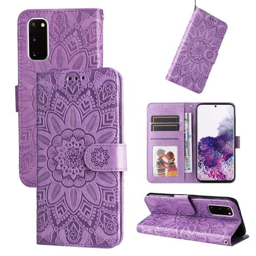 Estuche para Teléfono Samsung Galaxy S20 Cuero Estampado Girasol En Relieve (Púrpura)