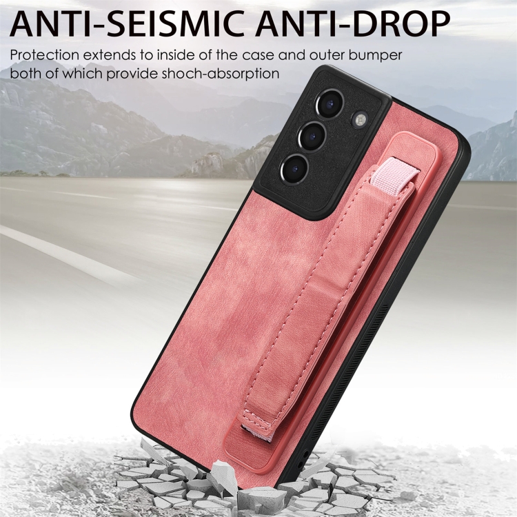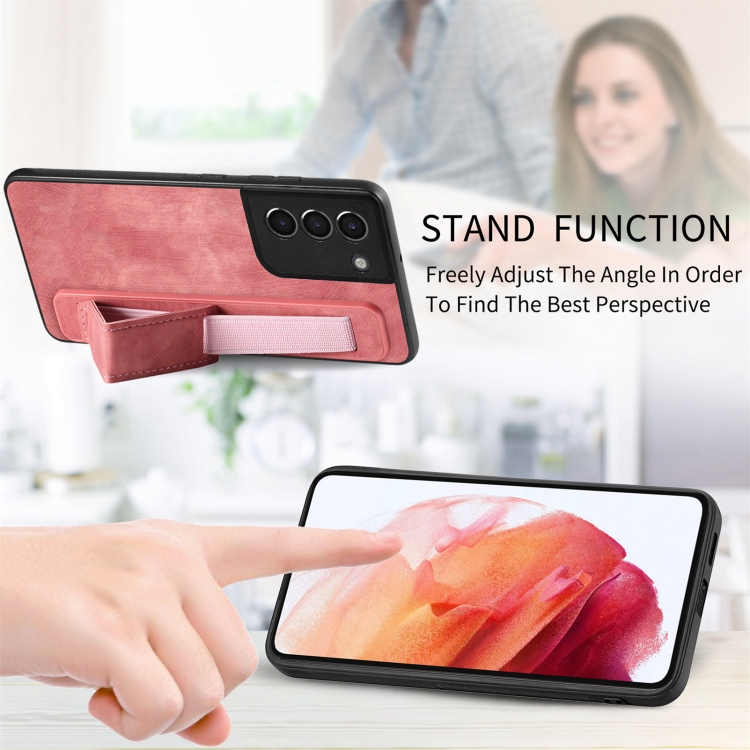 Funda Trasera Samsung Galaxy S21 5G Cuero Soporte Pulsera Retro (Rosa)