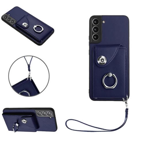 Funda para Teléfono Samsung Galaxy S21 FE 5G Bolsa para Tarjeta Soporte para Anillo con Cordón (Azul)