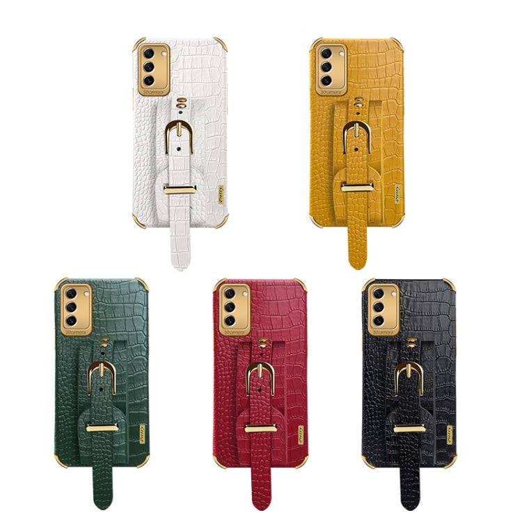 Para Samsung Galaxy S23 5G Estuche de cuero con patrón de cocodrilo de TPU galvanizado con correa para la muñeca (Blanco)