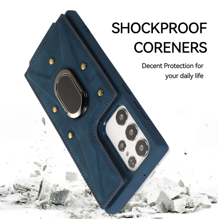 Para Samsung Galaxy S23 Ultra 5G Armor Ring Wallet Back Cover Phone Case (Azul)