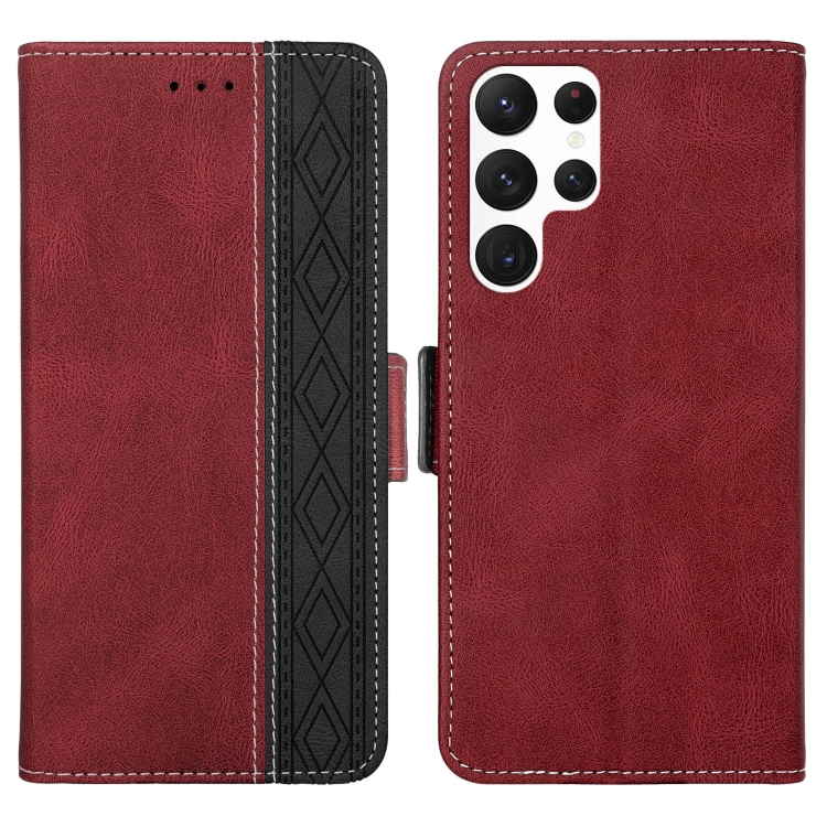 Para Samsung Galaxy S23 Ultra 5G Estuche para teléfono de cuero RFID con costura lateral magnética (Rojo)