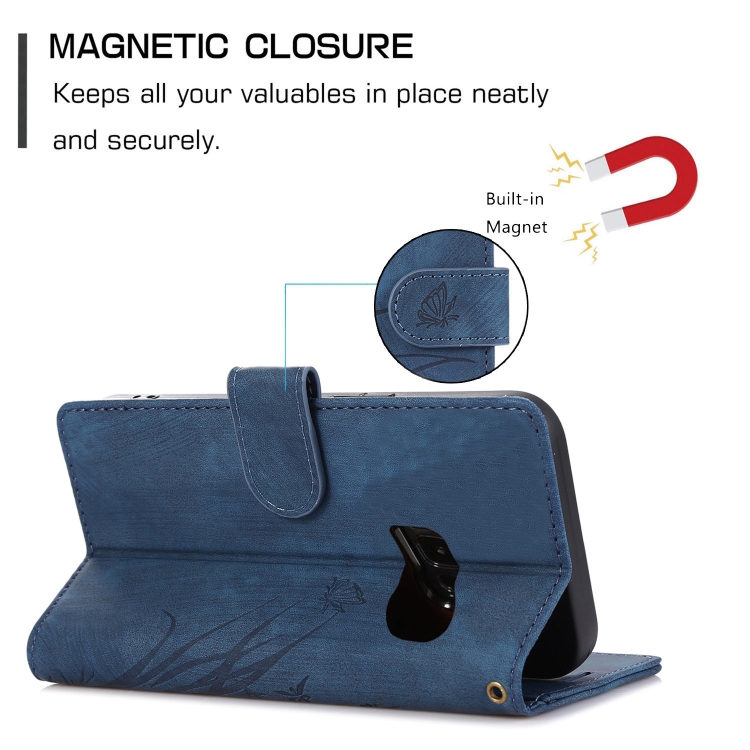Funda para Teléfono Samsung Galaxy S8 Cuero Relieve Mariposa Orquídea (Azul)