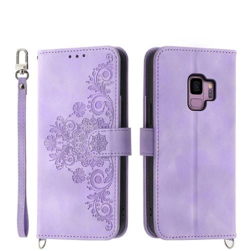 Funda para Teléfono Samsung Galaxy S9 Cuero con Billetera En Relieve y Flores (Púrpura)