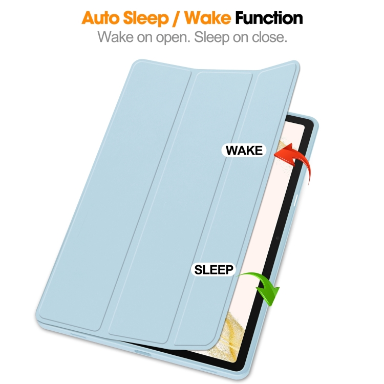 Funda para Tablet Samsung Galaxy Tab S9+ 3-Fold TPU Smart Leather con Ranura para Bolígrafo (Azul Claro)