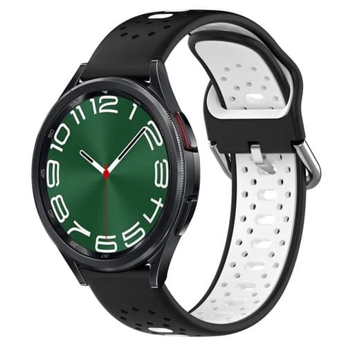 Banda de Reloj de Silicona para Samsung Galaxy Watch 6 Classic 43mm 20mm Dos Colores Transpirable (Negro + Blanco)