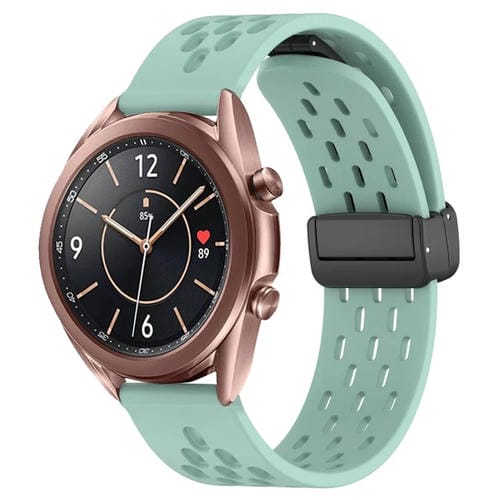 Correa de Silicona para Samsung Galaxy Watch3 41mm 20mm con Cierre Magnético Plegable (Verde Azulado)