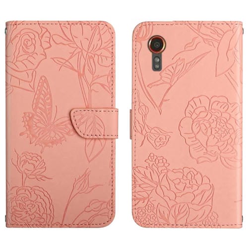 Funda de Cuero para Samsung Galaxy Xcover 7 5G Skin Feel Butterfly con Tapa en Relieve (Rosa)