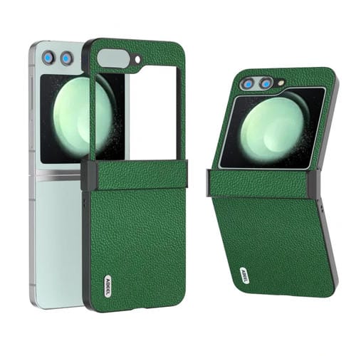 Funda para Teléfono Samsung Galaxy Z Flip5 Abeel Hinge Black Edge Mino de Cuero Genuino (Verde)