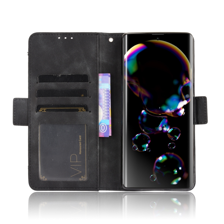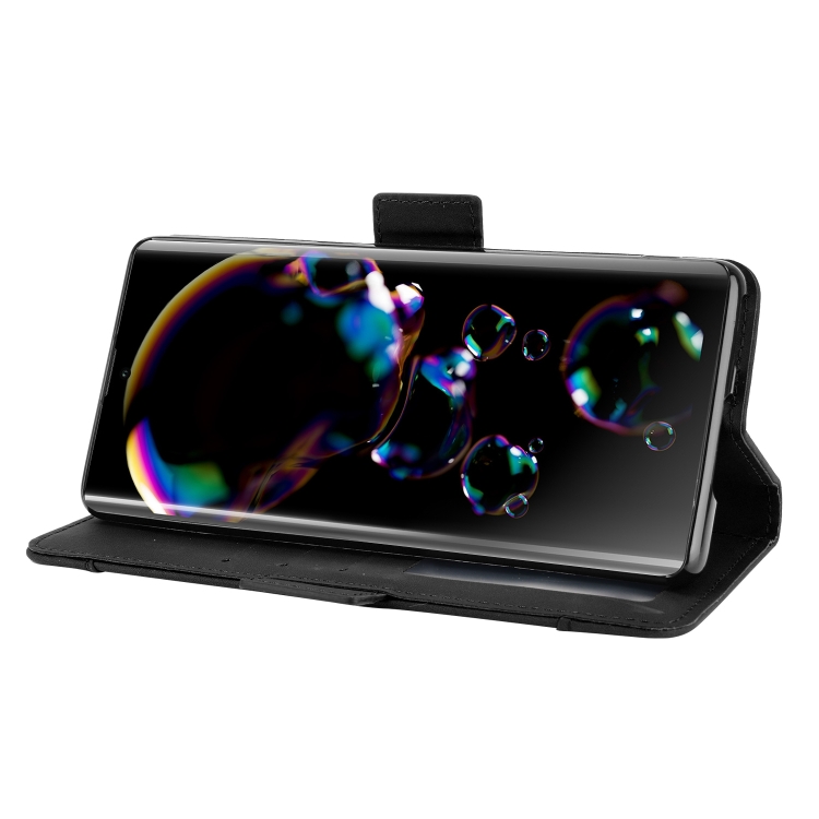 Funda de Cuero Flip para Sharp Aquos R6 con Soporte, Ranuras para Tarjetas y Marco de Fotos (Negro)