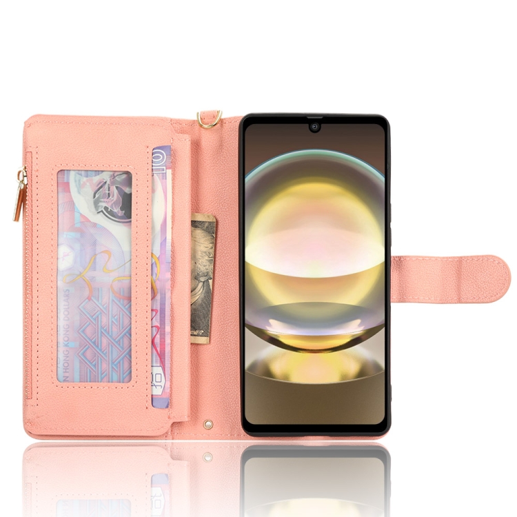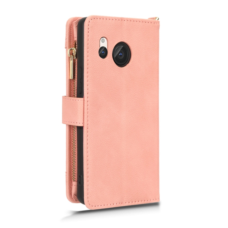 Funda de Cuero con Cremallera para Sharp Aquos R8 Litchi Textura (Rosa)