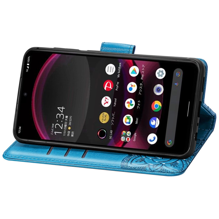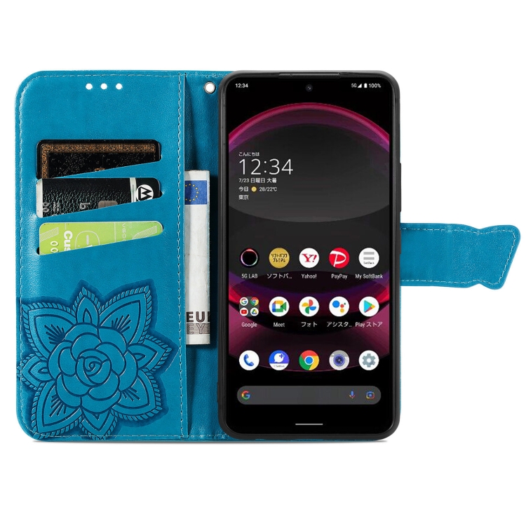 Estuche para teléfono Sharp Aquos R8 Pro Butterfly Love Flower en cuero en relieve (Azul)