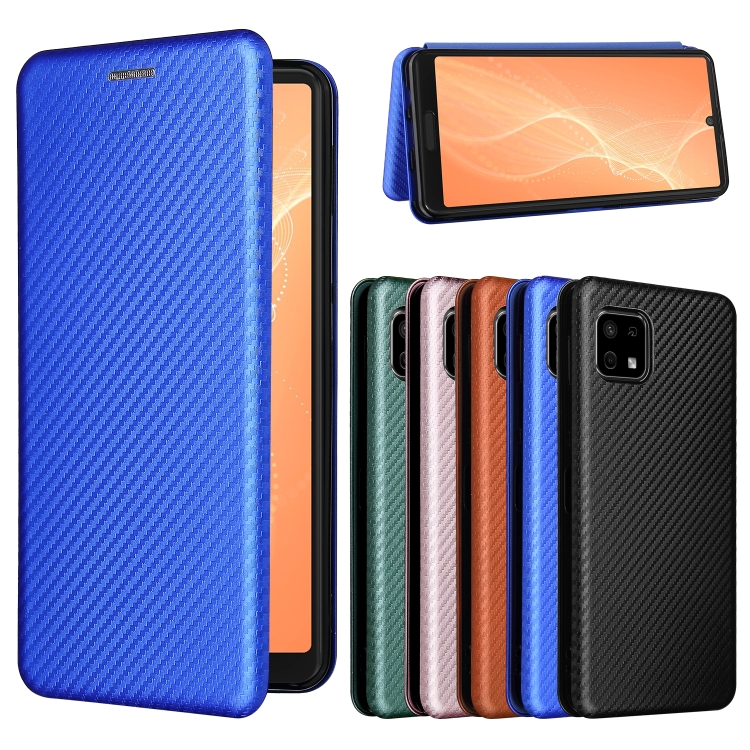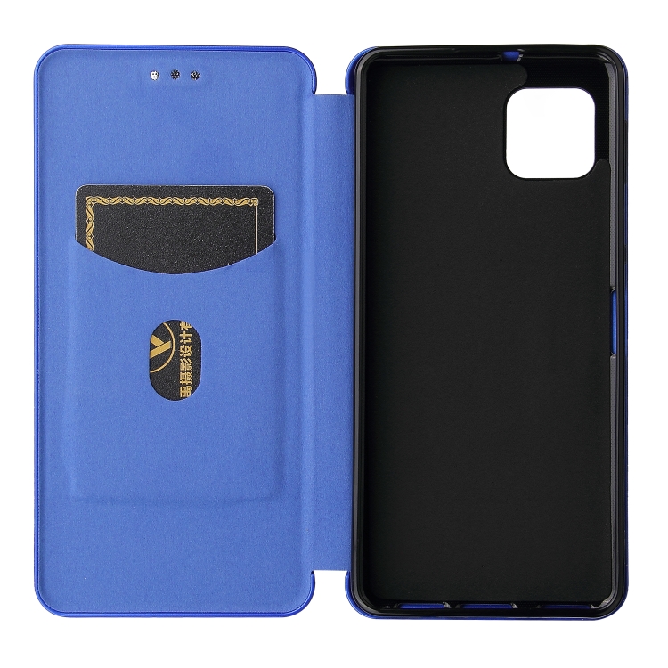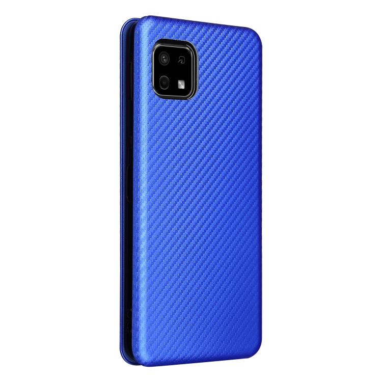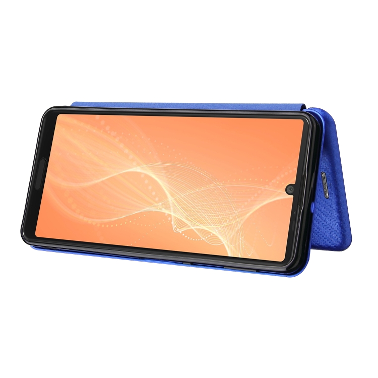 Funda para Sharp Aquos Sense 6 con Textura Fibra Carbono, Flip Horizontal Magnético, TPU + PC y Cuero PU con Ranura para Tarjeta (Azul)