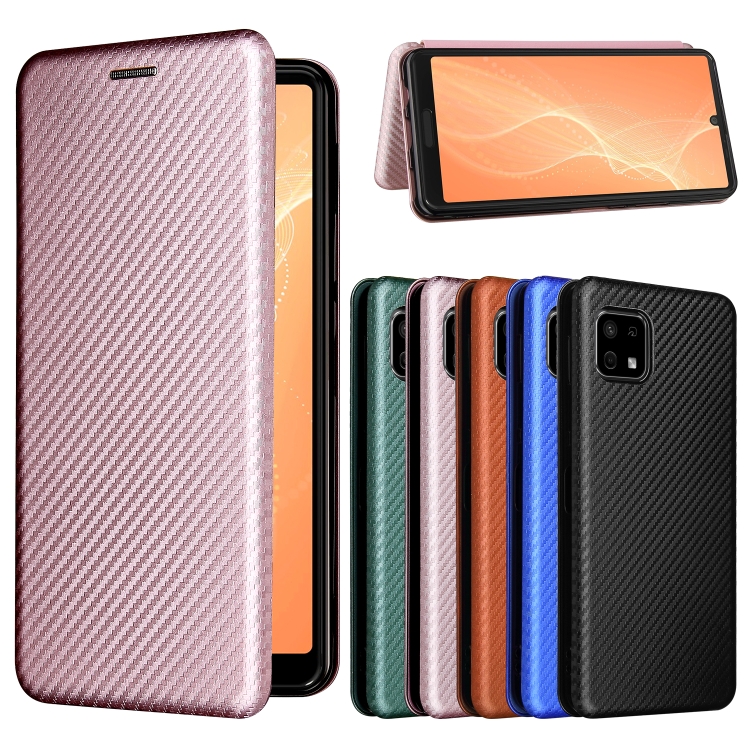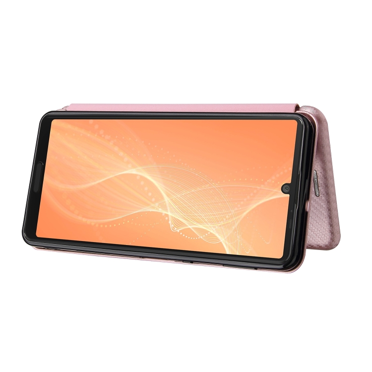 Funda para Sharp Aquos Sense 6 con Textura Carbon Fiber, Flip Horizontal Magnético, TPU + PC + Cuero PU con Ranura para Tarjeta (Rosa)