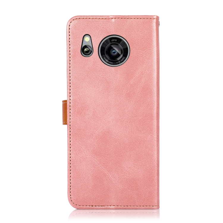 Estuche para Sharp Aquos Sense7 Khazneh de Cuero con Textura de Piel de Vaca Dos Colores (Oro Rosa)