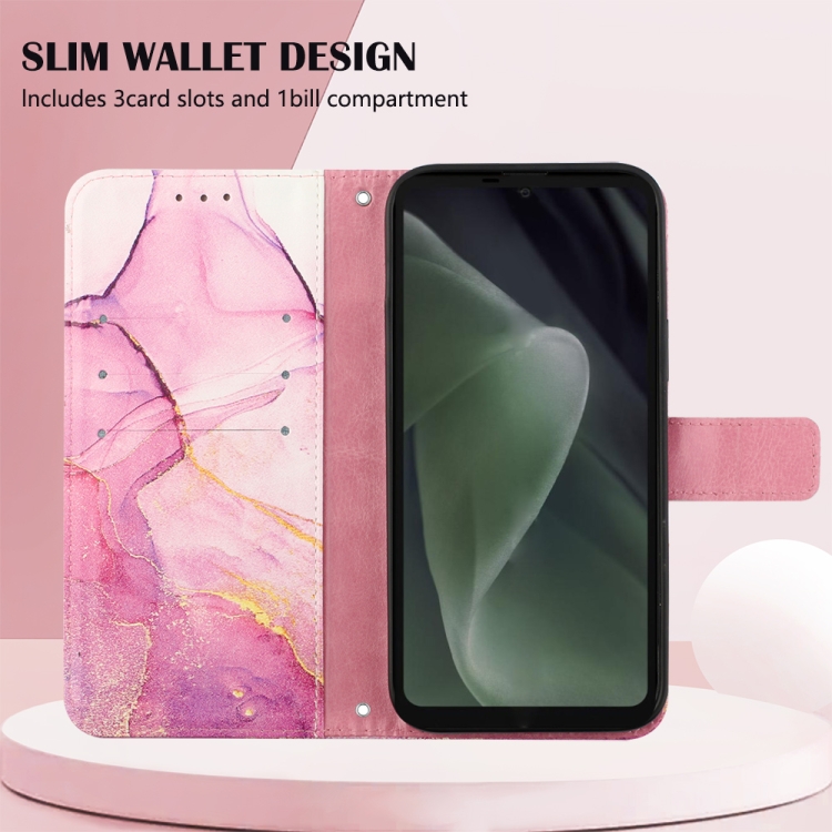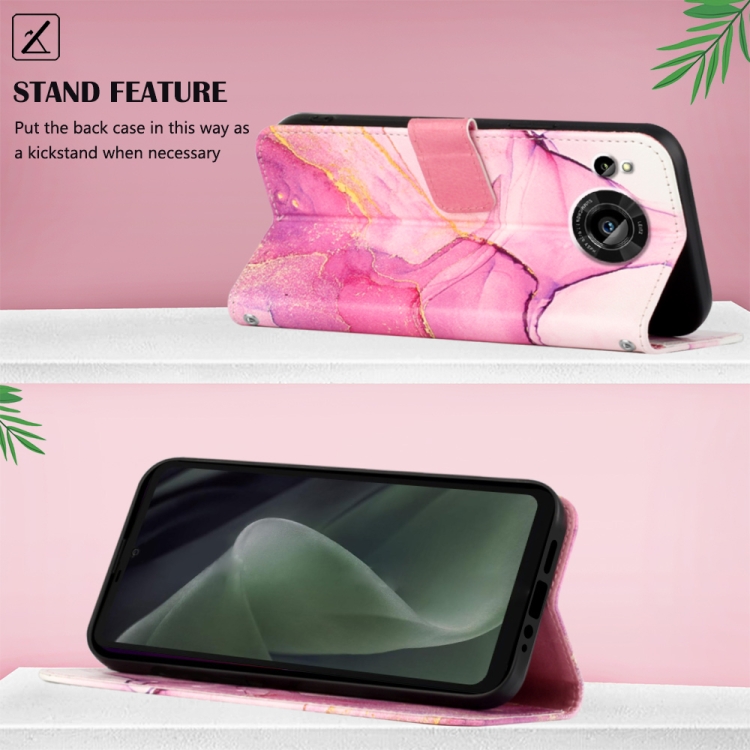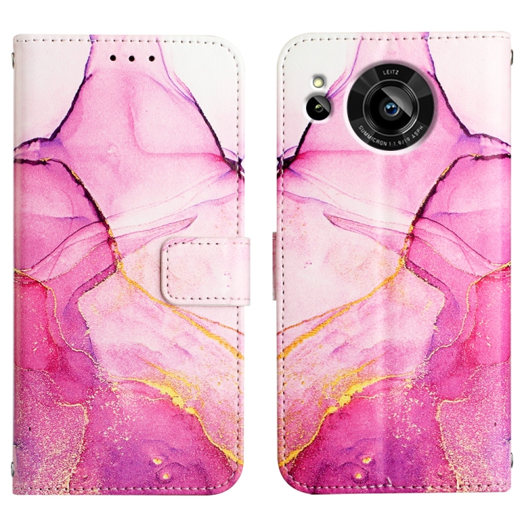 Funda de Cuero Flip para Sharp Aquos Sense7 Sh-V48 con Patrón de Mármol (Rosa Púrpura Oro)