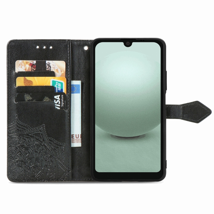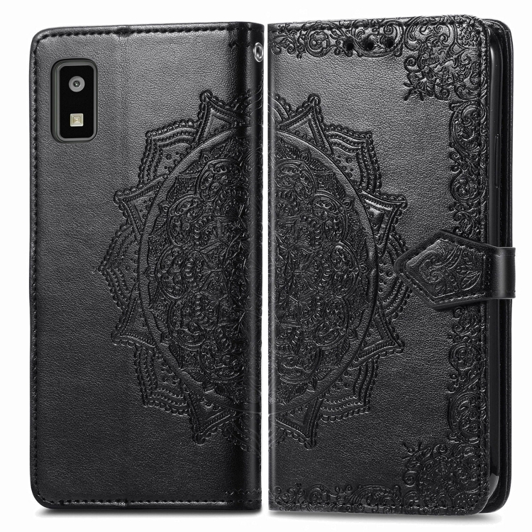 Estuche para Teléfono Sharp Aquos Wish 3 Mandala Flower Cuero En Relieve (Negro)