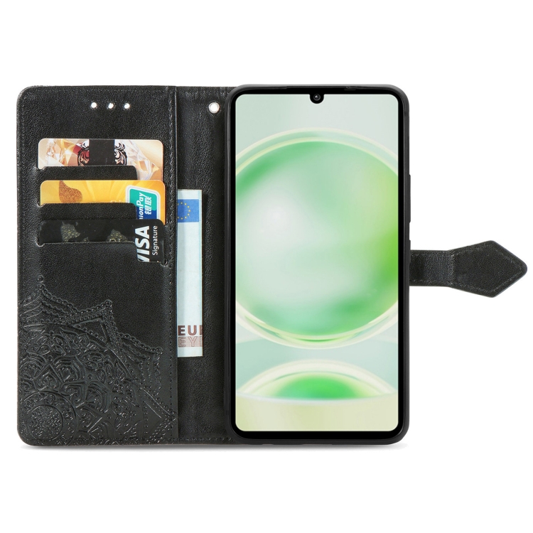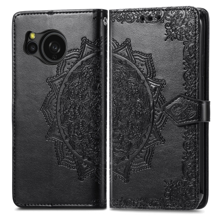 Funda para Sharp Sense 8 Cuero con Relieve de Flores Mandala (Negro)