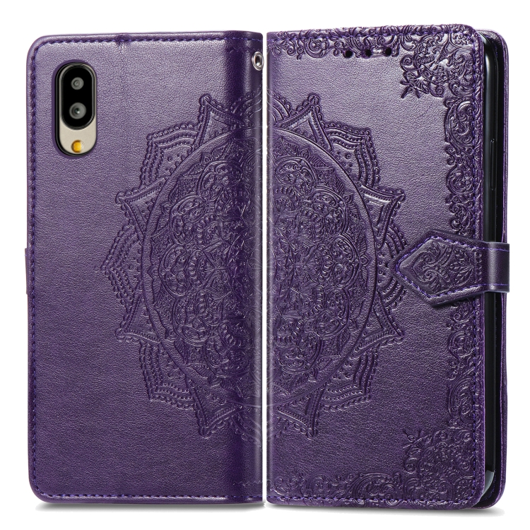 Estuche para Teléfono Sharp Simple Sumaho 6 Mandala Flower Cuero En Relieve (Púrpura)