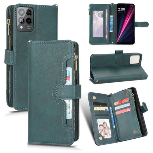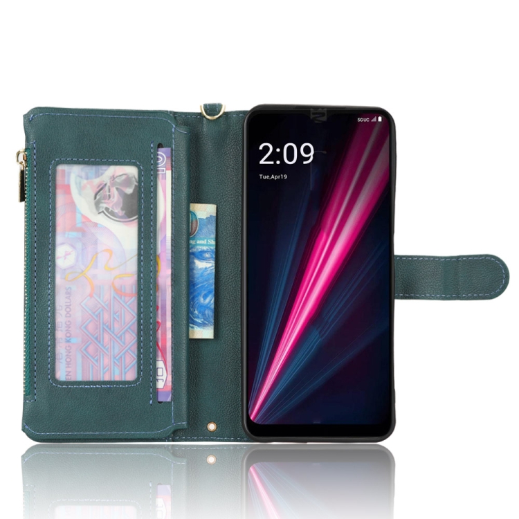 Funda de Cuero con Cremallera para T-Mobile Revvl 6 Pro 5G Litchi Textura (Verde)