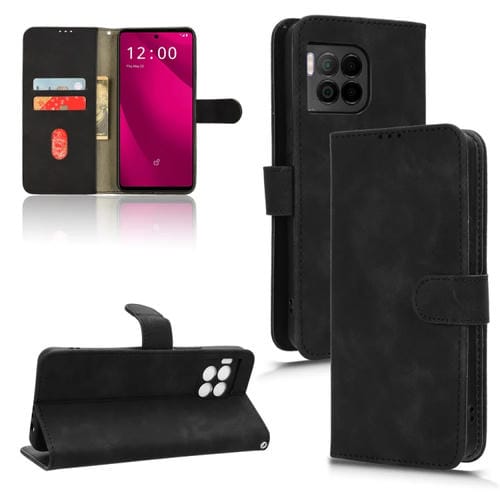 Funda de Cuero con Tapa Magnética para T-Mobile Revvl 7 Pro 5G (Negro)