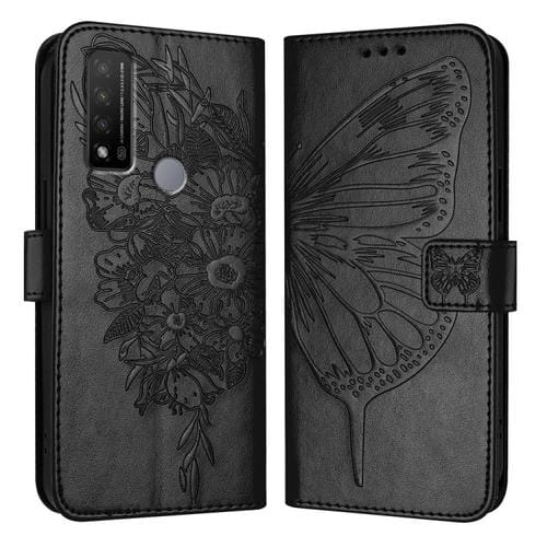 Funda de Cuero para TCL 20 R 5G con Mariposa en Relieve (Negro)