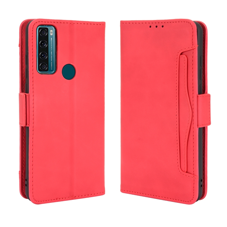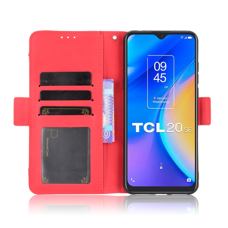 Funda de Cuero Flip para TCL 20 Se con Soporte, Ranuras para Tarjetas y Marco de Fotos (Rojo)