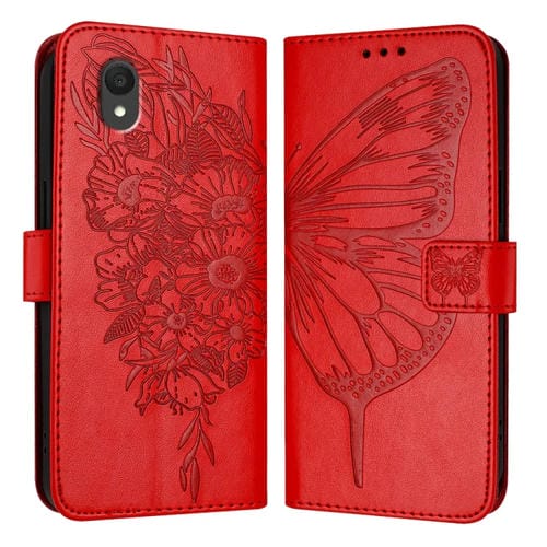 Funda de Cuero para TCL 201 con Mariposa en Relieve (Rojo)