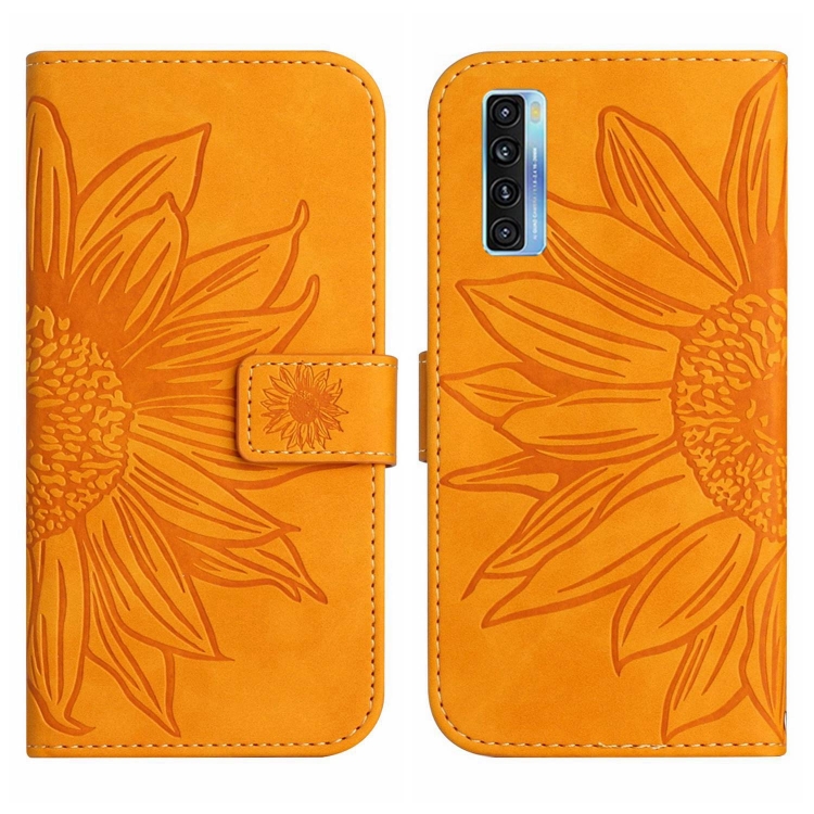 Funda Flip de Cuero para TCL 20S 20 5G 20L 20L+ con Cordón (Amarillo) Skin Feel Sun Flower Pattern