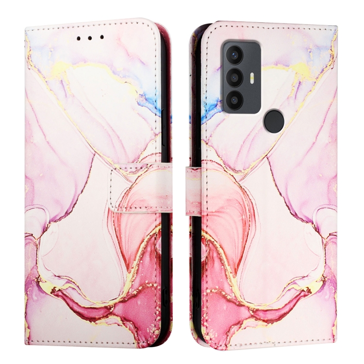 Funda de Cuero con Tapa para TCL 30 Se Pt003 con Patrón de Mármol (Oro Rosa)