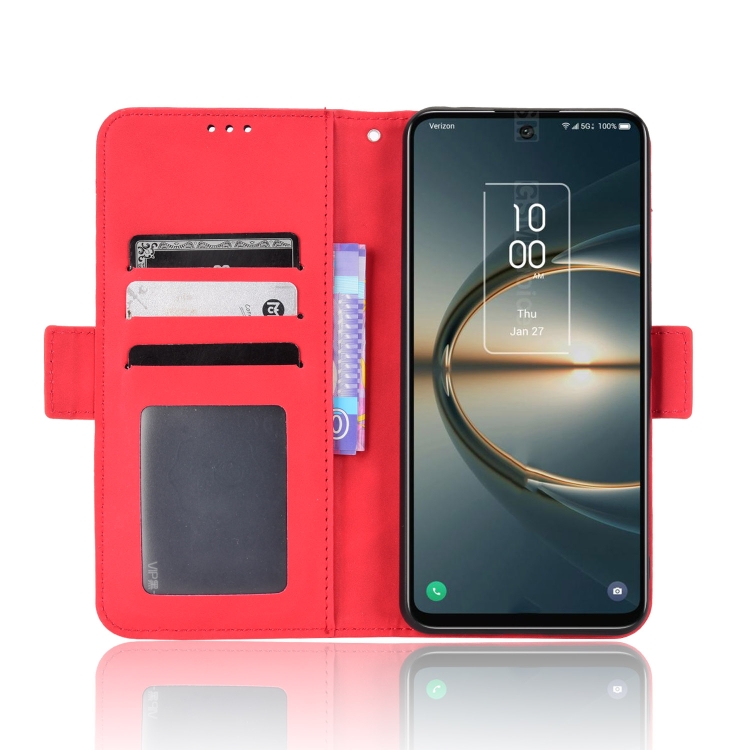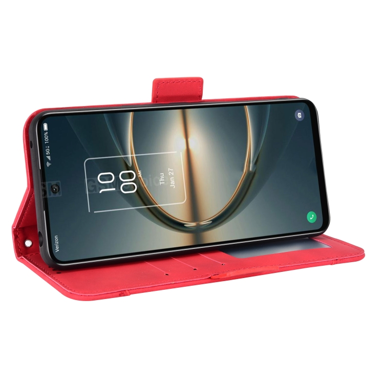 Funda para TCL 30V 5G Piel con Patrón de Becerro Estuche de Teléfono (Rojo)