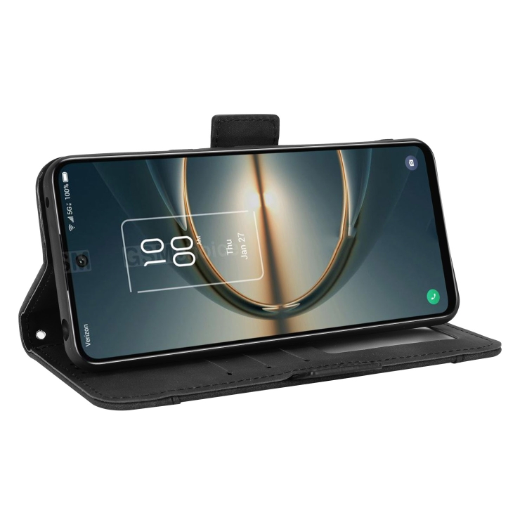 Funda para TCL 30V 5G Piel Siente Caja de Cuero Patrón Pantorrilla (Negro)