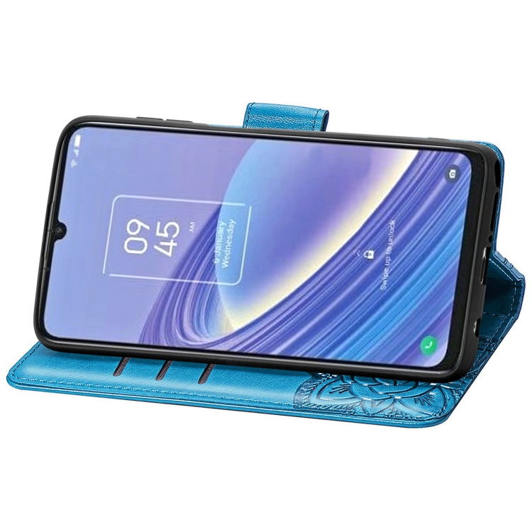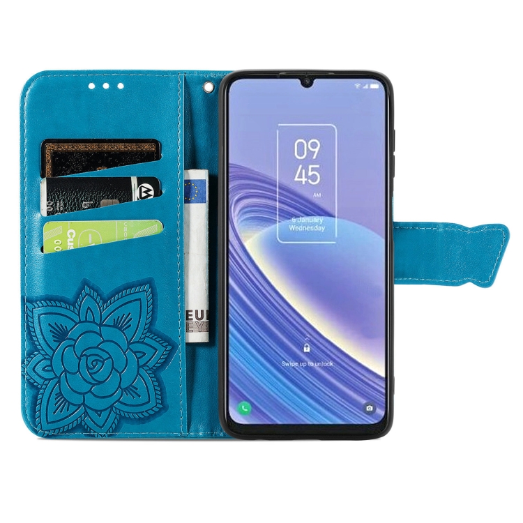 Estuche para TCL 40 Se Butterfly Love Flower de Cuero En Relieve (Azul)