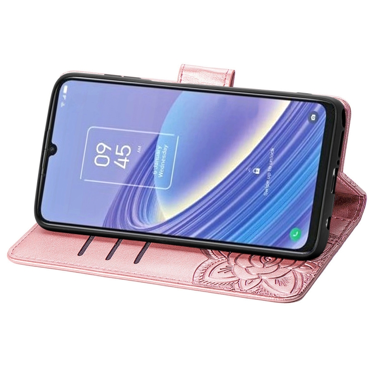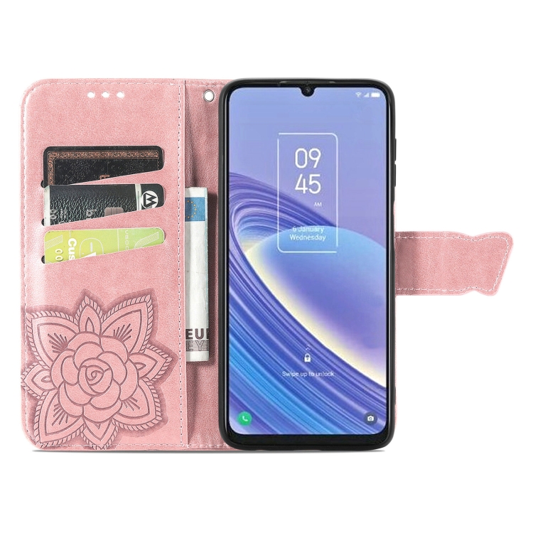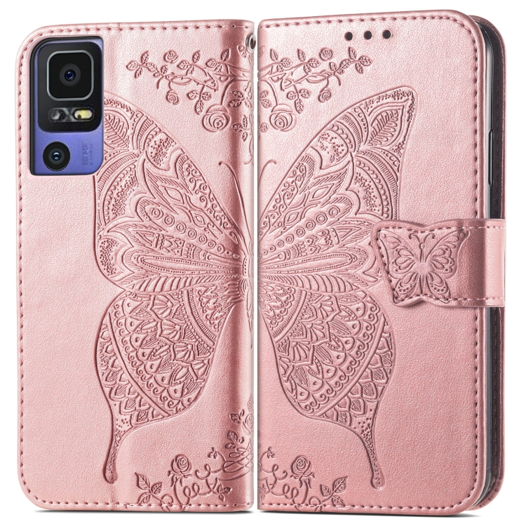 Estuche para TCL 40 Se Butterfly Love Flower de Cuero en Relieve (Oro Rosa)